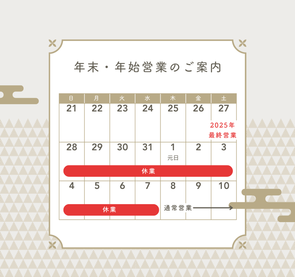 【重要】2025-2026年 年末年始の営業・発送スケジュールのお知らせ