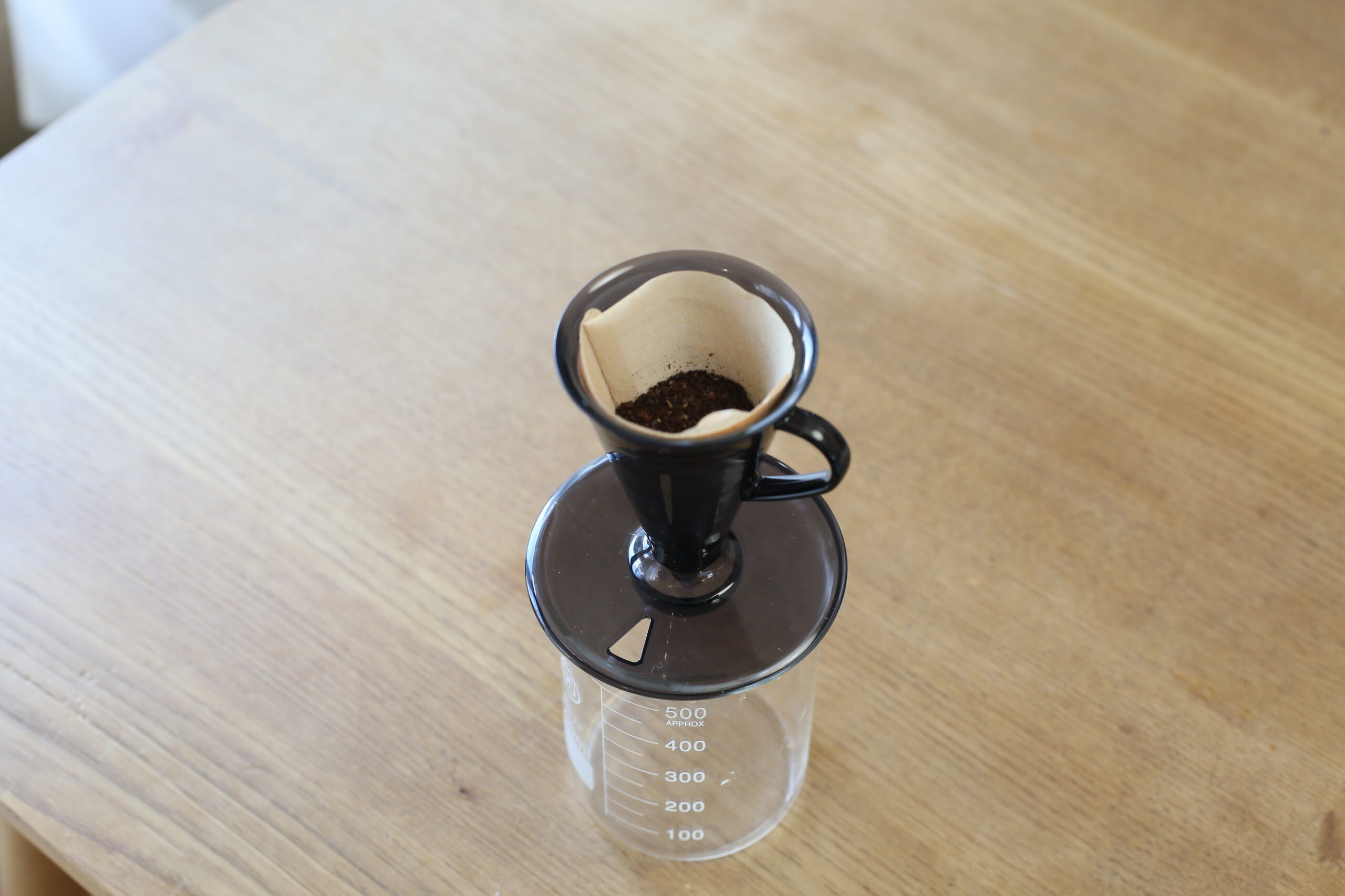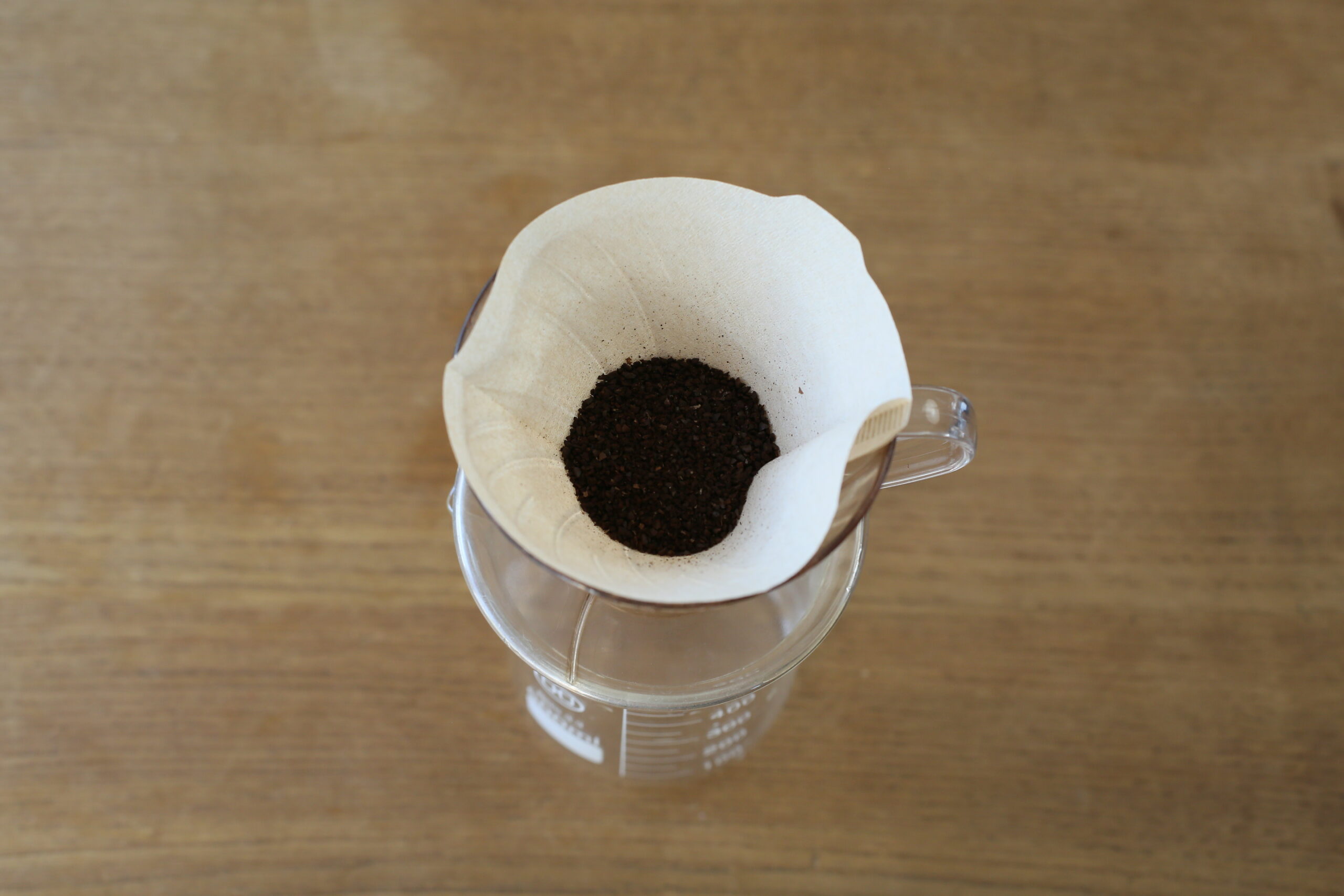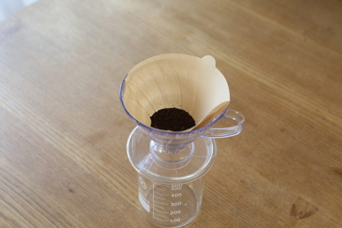 2〜4杯用の大きなドリッパーを使うと、粉が広く浅く広がり、