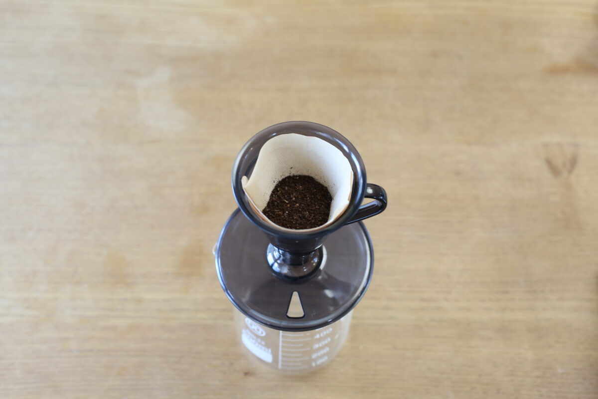 1杯専用ドリッパー「コニカル30」に10gの豆を入れた状態