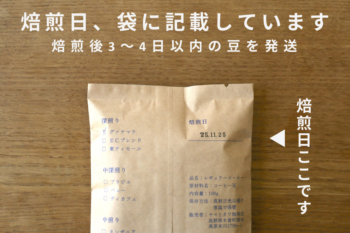 A. ご注文をいただいてから、焙煎3~4日以内の豆を発送しています。