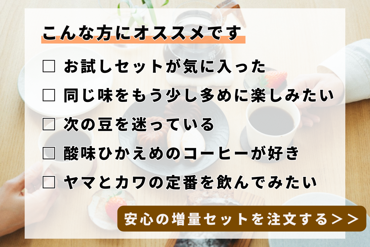 「お試しセットを飲み終えた」「次はどの豆を買えばいい?」